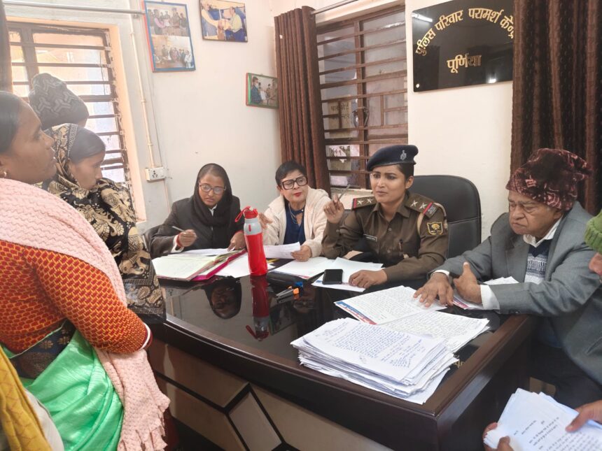 पूर्णिया: पुलिस परिवार परामर्श केंद्र में आज कुल 32 मामलों की सुनवाई हुई, जिसमें से पाँच मामलों का समाधान कराया गया। चार दंपतियों को समझा-बुझाकर दोबारा साथ रहने के लिए राज़ी किया गया, जबकि दो मामलों में दंपतियों की जिद और आपसी सहमति न बनने पर उन्हें थाना या न्यायालय की प्रक्रिया अपनाने की सलाह दी गई।