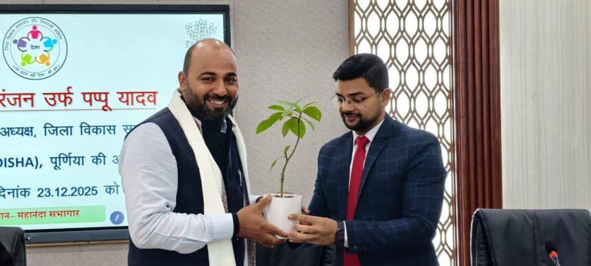 PURNIA NEWS : पूर्णिया में सोमवार को जिला विकास समन्वय एवं अनुश्रवण समिति (DISHA) की अहम बैठक आयोजित की गई, जिसकी शुरुआत विधिवत दीप प्रज्वलन के साथ हुई और बैठक की अध्यक्षता की गई। बैठक में जिलाधिकारी सहित विभिन्न विभागों के वरिष्ठ अधिकारी और जनप्रतिनिधि मौजूद रहे।