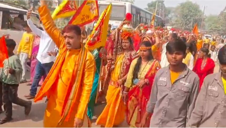 PURNIA NEWS,आनंद यादुका : भवानीपुर प्रखंड मुख्यालय स्थित अति प्राचीन श्रीराम जानकी ठाकुरबाड़ी में मंगलवार से नौ दिवसीय श्रीविष्णु महायज्ञ एवं श्रीमद्भागवत कथा आरम्भ हो गया । मंगलवार से आरम्भ हुए श्रीविष्णु महायज्ञ एवं श्रीमद्भागवत कथा का शुभारम्भ विशाल कलश यात्रा निकाल कर किया गया । मंगलवार को श्रीराम जानकी ठाकुरबाड़ी से निकाली गई कलश यात्रा में हजारों नारियों एवं कन्याओं ने हिस्सा लिया । इस दौरान समूचे भवानीपुर नगर पंचायत का माहौल आध्यत्मिक और भक्तिमय बन गया । श्रीराम जानकी ठाकुरबाड़ी से निकाली गई कलश यात्रा समूचे नगर पंचायत भवानीपुर का भ्रमण करते हुए पुनः श्रीराम जानकी ठाकुरबाड़ी पहुंच कर समाप्त हुआ । कलश यात्रा में शामिल श्रद्धालुओ के द्वारा लागये जा रहे राधे-राधे, जय श्रीकृष्ण के गगनभेदी नारो से समूचा भवानीपुर गुंजायमान बना रहा ।