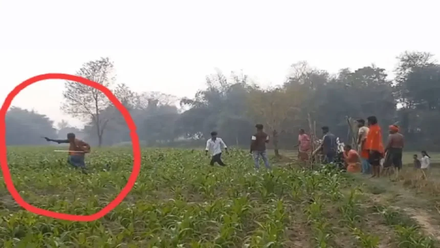 पूर्णिया, आनंद यादुका: अकबरपुर थाना क्षेत्र के नकटापार सोढ़न बहियार में जमीन विवाद को लेकर दो पक्षों के बीच तनाव का मामला सामने आया है। विवाद के दौरान एक पक्ष द्वारा अवैध हथियार लहराते हुए दूसरे पक्ष को खदेड़ने का वीडियो सोशल मीडिया पर तेजी से वायरल हो गया है। वायरल वीडियो में साफ तौर पर देखा जा सकता है कि एक युवक हाथ में अवैध हथियार लेकर दूसरे पक्ष को धमकाते हुए खेत से खदेड़ रहा है।