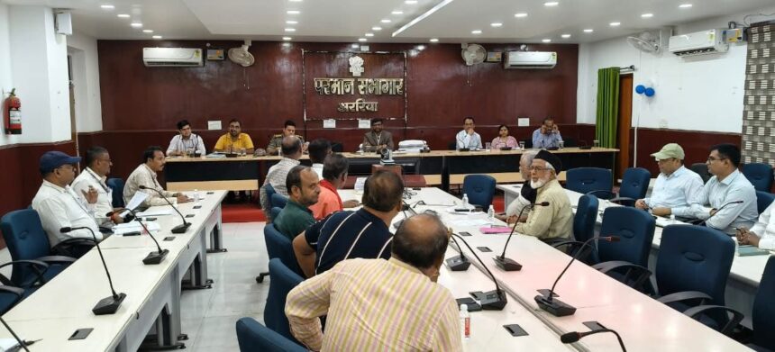 ARARIA NEWS प्रिंस(अन्ना राय) : दीपावली एवं छठ महापर्व को शांतिपूर्ण और सौहार्दपूर्ण वातावरण में संपन्न कराने हेतु समाहरणालय स्थित परमान सभागार में जिला पदाधिकारी अररिया अनिल कुमार की अध्यक्षता में जिला स्तरीय शांति समिति की बैठक आयोजित की गई। बैठक में संबंधित पदाधिकारियों के साथ जनप्रतिनिधि, प्रबुद्धजन एवं शांति समिति के सदस्यों ने भाग लिया।