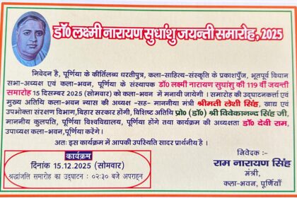 पूर्णिया में मनाई जाएगी डॉ. लक्ष्मी नारायण सुधांशु की 119वीं जयंती, कई गणमान्य अतिथि होंगे शामिल
