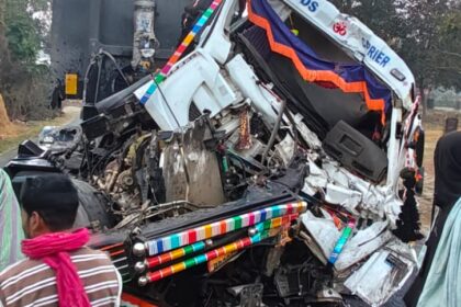 सुपौली पंचायत के ब्रह्मज्ञानी में गिट्टी लदा दो हाइवा टकराया, लगी जाम