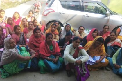 मानदेय कटौती एवं गैस चूल्हा आवंटन को लेकर सेविकाओं ने दिया सीडीपीओ कार्यालय के समक्ष धरना