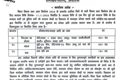 अररिया में मतदान कर्मियों के भोजन की दरें निर्धारित – रसोईया-सह-सहायक निर्धारित दर पर उपलब्ध कराएंगे गुणवत्तापूर्ण भोजन
