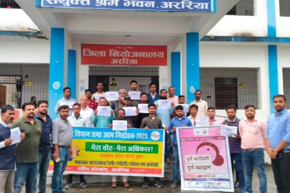 श्रमिकों को मतदान के लिए जागरूक करने हेतु अररिया में निकली रैली, शत-प्रतिशत वोटिंग की अपील