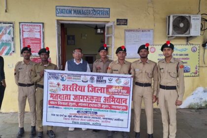 फारबिसगंज रेलवे स्टेशन पर मतदाता जागरूकता और सामाजिक कुरीतियों के खिलाफ अभियान