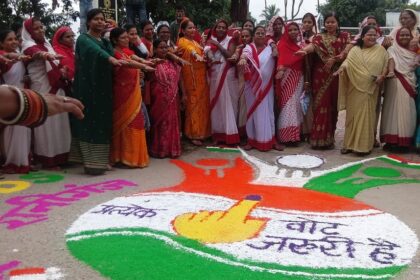 रानीगंज में सेविकाओं ने रंगोली बनाकर दी मतदान जागरूकता, ‘प्रत्येक वोट जरूरी’ की ली शपथ