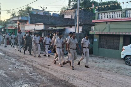 सरसी में दुर्गा पूजा के शांतिपूर्ण समापन को लेकर पुलिस ने किया फ्लैग मार्च