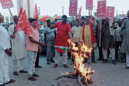 SAHARSA NEWS : भागलपुर में अडानी को 1050 एकड़ जमीन देने के खिलाफ सीपीएम ने मोदी-नीतीश का पुतला फूंका