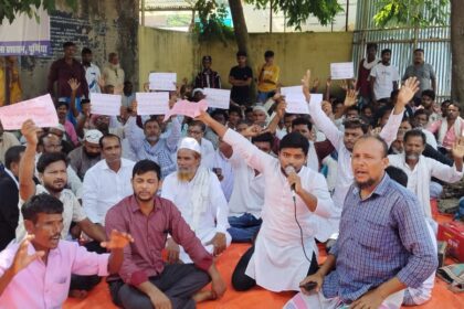 PURNIA NEWS : कनकई नदी के कटाव से नहरा गांव को बचाने को लेकर गांव वासियों ने प्रखंड मुख्यालय में दिया धरना प्रदर्शन