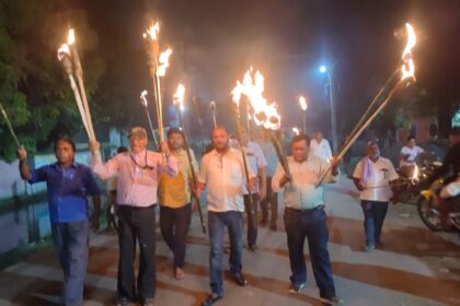 PURNIA NEWS : एनएमओपीएस के आह्वान पर भवानीपुर में निकाला गया मशाल जुलूस