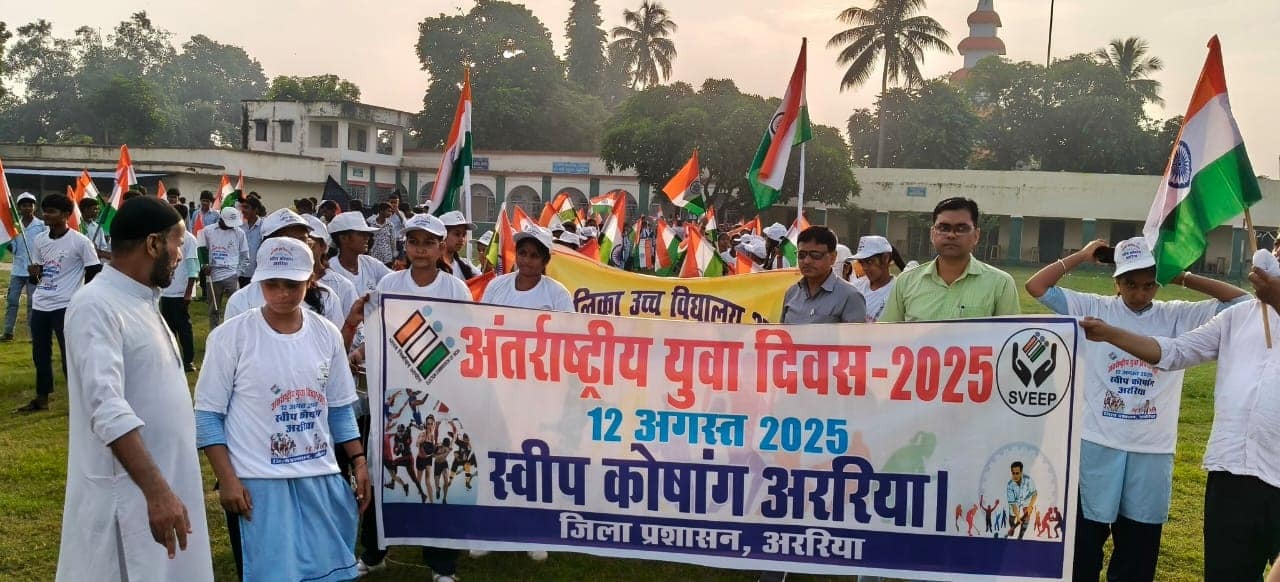 ARARIA NEWS अररिया में अंतरराष्ट्रीय युवा दिवस पर छात्र-छात्राओं ने निकाला तिरंगा यात्रा