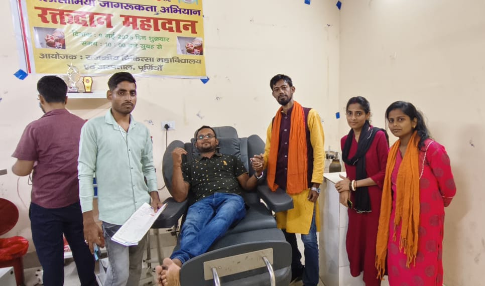PURNIA NEWS : विश्व हिंदू युवा वाहिनी संघ ने समय पर रक्तदान कर बुजुर्ग महिला को जीवनदान दिया