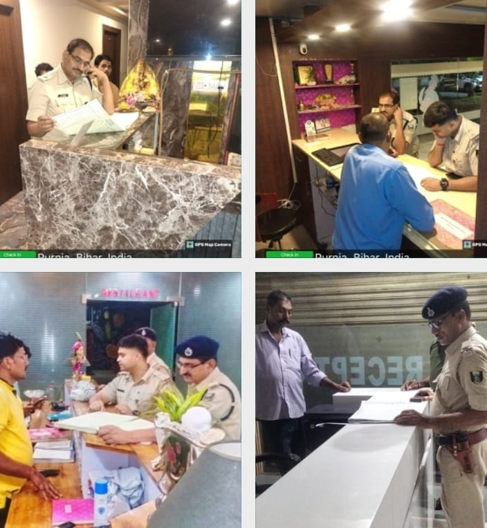 PURNIA NEWS : पूर्णिया शहर के होटलों में रात्रि जांच, सुरक्षा और अपराध नियंत्रण को लेकर की गई सख्त कार्रवाई