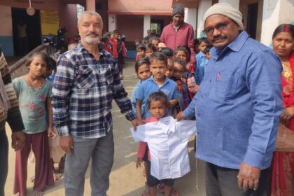 समाजसेवी मनोज कुमार भगत ने 450 स्कूली बच्चों के बीच अंगवस्त्र (शर्ट) वितरण किया