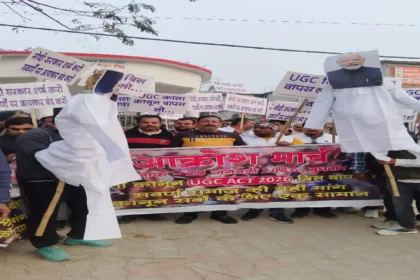 UGC Equity in HEI Act 2026 के खिलाफ पूर्णिया में जोरदार विरोध, पैदल मार्च के बाद पुतला दहन