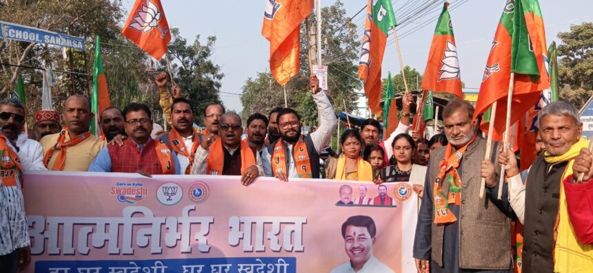 स्वदेशी अपनाओ जन जागरण कार्यक्रम के तहत भाजपा ने निकाली पदयात्रा