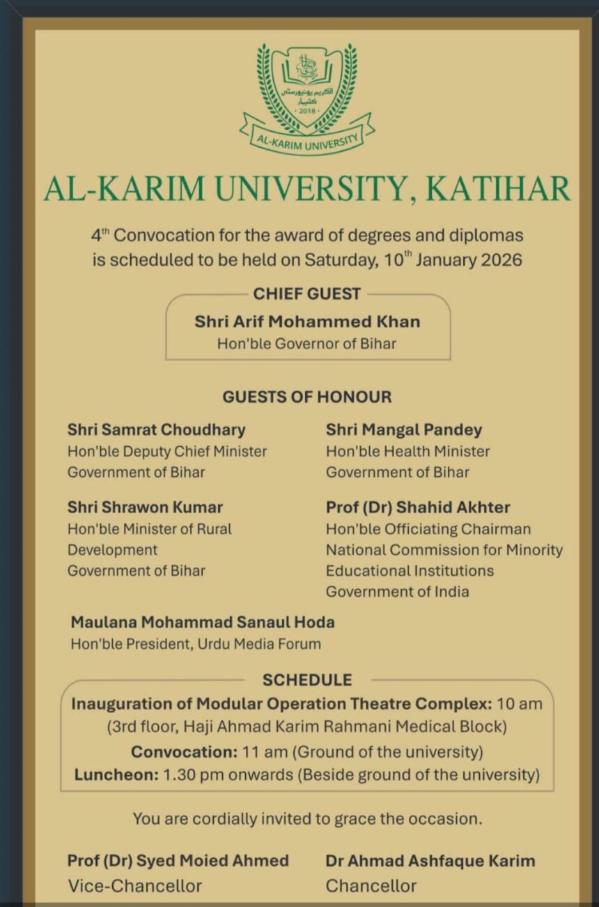 कटिहार में अल-करीम विश्वविद्यालय का चौथा दीक्षांत समारोह 10 जनवरी को