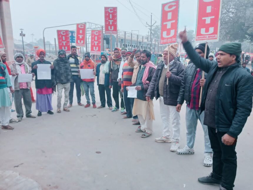 सहरसा, अजय कुमार : खेत मजदूर यूनियन एवं निर्माण कामगार यूनियन सीटू से जुड़े कार्यकर्ता ने सीपीएम जिला पार्टी कार्यालय से सरकार के मजदूर विरोधी नीतियों के खिलाफ एक सरकार के खिलाफ नारा लगाते हुए नरेंद्र मोदी सरकार द्वारा राष्ट्रीय रोजगार गारंटी कानून को बदलकर मोदी सरकार द्वारा बंद करने की साजिश के खिलाफ जी राम जी विधेयक की प्रतियां जलाई गई। जिसके उपरांत सीटू नेता दुखी शर्मा की अध्यक्षता में सभा को सम्बोधित करते हुए सीपीएम नेता कुलानन्द कुमार ने कहा मोदी सरकार बड़े बड़े पूंजीपतियों के सरकार पक्ष में कानून बनाते हैं।यह सरकार किसान मजदूर विरोधी है।