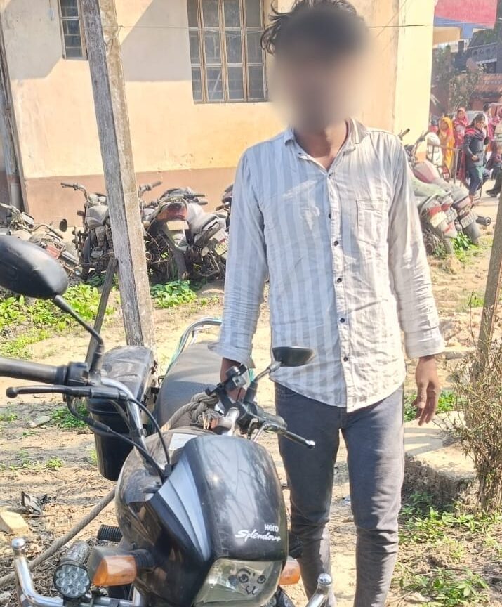पूर्णिया: धमदाहा थाना पुलिस द्वारा 04 फरवरी 2026 को कार्रवाई करते हुए चोरी की एक मोटरसाइकिल के साथ एक अभियुक्त को गिरफ्तार किया गया।