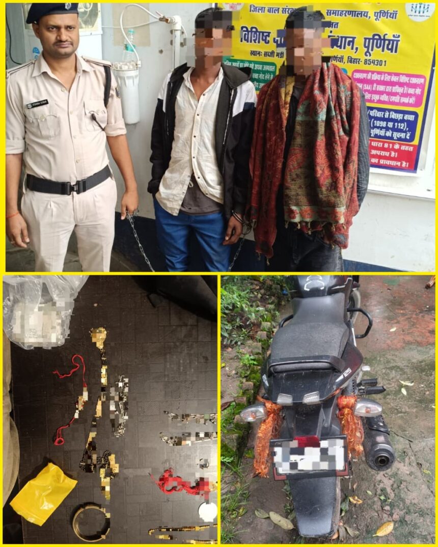 इस मामले में दो अभियुक्तों — आकाश कुमार उरांव (उम्र 24 वर्ष, पिता वासुदेव उरांव, निवासी आईना महल) और विक्रम ऋषि (उम्र 24 वर्ष, पिता लक्ष्मण ऋषि, निवासी इमलीपट्टी, वार्ड नं. 36, थाना सदर, जिला पूर्णिया) — को गिरफ्तार किया गया है