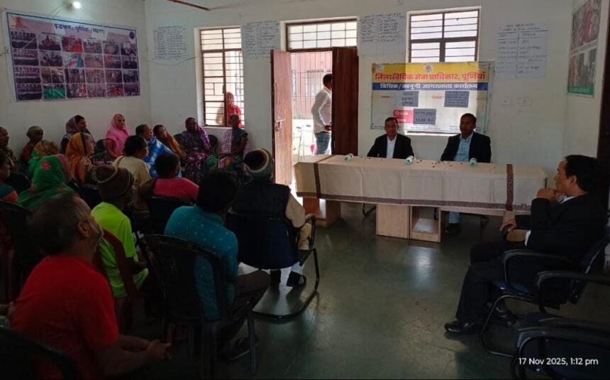 पूर्णिया, विधि संवाददाता: राष्ट्रीय विधिक सेवा प्राधिकरण नई दिल्ली एवं बिहार राज्य विधिक सेवा प्राधिकार पटना के आलोक में प्रधान जिला एवं सत्र न्यायाधीश सह अध्यक्ष जिला विधिक सेवा प्राधिकार पूर्णिया कन्हैया जी चौधरी के निर्देशानुसार 17 नवंबर 2025 को सहारा वृद्धा आश्रम, मरंगा, पूर्णिया में माता-पिता एवं वरिष्ठ नागरिक भरण पोषण एवं कल्याण अधिनियम 2007 एवं नालसा (वरिष्ठ नागरिकों को विधिक सेवा) योजना 2016 विषय पर विधिक जागरूकता कार्यक्रम किया गया। जागरूकता कार्यक्रम में जिला विधिक सेवा प्राधिकार पूर्णिया के सचिव सुनील कुमार, चीफ एल ए डी सी पूर्णिया ओम प्रकाश पासवान तथा अमरेश कुमार, सहायक निदेशक जिला सामाजिक सुरक्षा कोषांग पूर्णिया के द्वारा उपस्थित वरिष्ठ नागरिकों को जागरूक किया गया। वरिष्ठ नागरिकों को केंद्र सरकार एवं राज्य सरकार द्वारा द्वारा चलाई जा रही जन कल्याणकारी योजनाओं एवं दंड प्रक्रिया संहिता 125 एवं 128 (अब क्रमशः 144 व 147 बी एन एस एस) के बारे में बताया गया। उन्हें यह भी बताया गया कि यदि वे चाहें तो जिला विधिक सेवा प्राधिकार पूर्णिया से संपर्क कर या वृद्धाश्रम में स्थापित विधिक सहायता क्लीनिक में प्रतिनियुक्ति पारा विधिक स्वयं सेवक के माध्यम से विधिक सेवा प्राप्त कर सकते हैं।