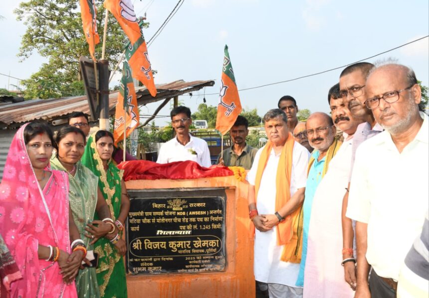 विजय खेमका ने कहा कि अब गांवों में शहर जैसी सुविधाएं उपलब्ध हो रही हैं, जिनमें पंचायत भवन, खेल का मैदान, हेल्थ सेंटर, नल-जल, वार्ड में एलईडी लाइट, हर घर बिजली और स्कूल भवन शामिल हैं। उन्होंने कहा कि डबल इंजन की सरकार में पूर्णिया का पिछले दस सालों में विकास बेमिसाल हुआ है और जनता के आशीर्वाद से यह विकास आगे भी जारी रहेगा।