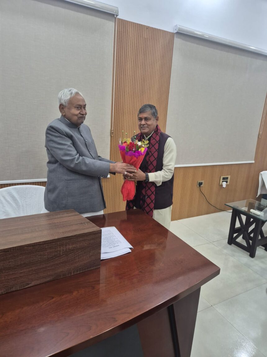 PURNIA NEWS : बिहार के मुख्यमंत्री नीतीश कुमार से विधायक विजय खेमका ने एक अणे मार्ग स्थित आवास पर मुलाकात कर पुष्पगुच्छ भेंट करते हुए आत्मीय अभिनंदन किया। इस दौरान विधायक खेमका ने मुख्यमंत्री की प्रगति यात्रा के दौरान पूर्णिया को मिली विकास योजनाओं की अद्यतन स्थिति से उन्हें अवगत कराया और जिले की वर्तमान विधि-व्यवस्था पर भी विस्तार से चर्चा की।