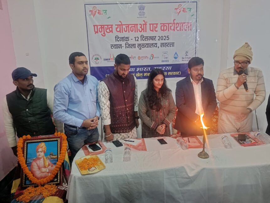 सहरसा, अजय कुमार : मेरा युवा भारत, सहरसा द्वारा कोअभिनव सेलिब्रेशन हॉल में एक दिवसीय कार्यशाला का सफल आयोजन किया गया। इस कार्यशाला में जिले के विभिन्न शिक्षण संस्थानों के छात्र-छात्राओं, युवा स्वयंसेवकों तथा कई सामाजिक कार्यकर्ताओं ने उत्साहपूर्वक भाग लिया।कार्यक्रम का संचालन मेरा भारत सहरसा के AO राजीव नंदन द्वारा किया गया। कार्यक्रम की शुरुआत मुख्य अतिथियों द्वारा दीप प्रज्वलन के साथ हुई। कार्यशाला में युवाओं को नेतृत्व क्षमता, सामाजिक जिम्मेदारियों, तकनीकी जागरूकता तथा सामुदायिक भागीदारी से जुड़ी महत्वपूर्ण जानकारियाँ दी गईं।