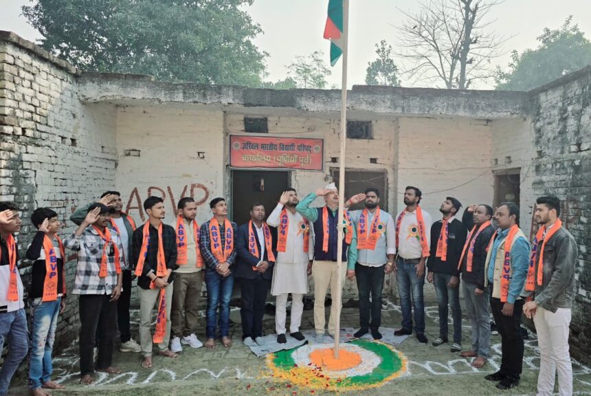 पूर्णिया: गणतंत्र दिवस के अवसर पर सोमवार को अखिल भारतीय विद्यार्थी परिषद (अभाविप) के पूर्णिया स्थित कार्यालय केशव कोठी, थाना चौक परिसर में झंडोत्तोलन कार्यक्रम का आयोजन किया गया, जहां नगर अध्यक्ष डॉ. नवनीत कुमार ने तिरंगा फहराया।