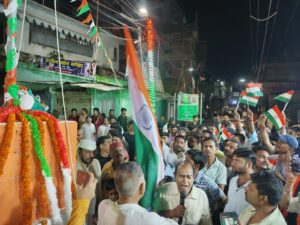 जैसे-जैसे घड़ी की सुइयां 12 के करीब पहुंचीं, हर गली और मोहल्ले से युवाओं की टोलियां हाथों में तिरंगा लिए, “भारत माता की जय” और “वंदे मातरम” के नारों के साथ चौक की ओर बढ़ने लगीं। आज तो पुलिस लाइन के सैकड़ों जवान भी सिविल ड्रेस में नारों की गूंज के साथ पहुंचे और लोगों का आकर्षण का केंद्र बन गए। पूरा माहौल देशभक्ति के उत्साह से भर गया। रात होते-होते पूरा चौक रोशनी से नहा उठा, बैंड-बाजों की गूंज से आसमान गूंजा और हजारों लोग गली गली और सड़क तथा मोहल्लोंसे आने लगे। स्थानीय लोग वर्षों से मांग कर रहे हैं कि झंडा चौक को “स्वतंत्रता संग्राम स्मारक” का दर्जा दिया जाए और इसे राज्य महोत्सव के रूप में मनाया जाए, ताकि इस गौरवगाथा को आने वाली पीढ़ियां भी जान सकें। यह न सिर्फ पूर्णिया का, बल्कि पूरे सीमांचल का गर्व है—जहां आज भी आधी रात का तिरंगा लहराकर स्वतंत्रता की अमर गाथा को जिंदा रखा जाता है।