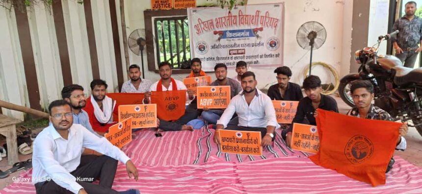 धरना स्थल पर किशनगंज जिला संयोजक दिपक चौहान, एंजेल कुमार, राजा कुमार, बिक्की ठाकुर, मारवाड़ी कॉलेज अध्यक्ष अंकित सिंह, कॉलेज मंत्री रोहित कुमार तुसार सहित सैकड़ों छात्र और कार्यकर्ता मौजूद थे। एबीवीपी ने चेतावनी दी कि यदि दोषी प्रधानाचार्य के खिलाफ तुरंत कार्रवाई नहीं हुई और छात्रों से की गई अवैध वसूली की राशि पूरी तरह वापस नहीं की गई, तो आंदोलन और तेज किया जाएगा। छात्रों और कार्यकर्ताओं का कहना है कि यह मामला केवल मारवाड़ी कॉलेज तक सीमित नहीं है, बल्कि विश्वविद्यालय प्रशासन की पारदर्शिता और छात्रहित की रक्षा पर भी गंभीर सवाल उठाता है। इसलिए सभी छात्र, अभिभावक और जागरूक नागरिक विश्वविद्यालय प्रशासन से निष्पक्ष और त्वरित कार्रवाई की अपेक्षा कर रहे हैं।