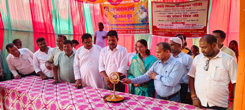 PURNIA NEWS,आनंद यादुका : भवानीपुर नगर पंचायत स्थित बलदेव उच्च विद्यालय प्रांगण में निर्मित कस्तूरबा गांधी आवासीय बालिका विद्यालय का शुक्रवार को विधायक शंकर सिंह की पत्नी सह जीप सदस्य सुनीता सिंह उर्फ प्रतिमा कुमारी, जिला सहायक कार्यक्रम प्रबंधक अरविंद कुमार, लेखा पदाधिकारी बिहार शिक्षा परियोजना पदाधिकारी प्रमोद कुमार ने दीप जलाकर एवं फीता कटकर किया । आयोजित उद्घटान समारोह में विद्यालय की छात्राओं के द्वारा सामूहिक स्वागत नृत्य कर आगत अतिथियों का स्वागत किया गया । इस दौरान विद्यालय परिवार के द्वारा सभी अतिथियों को अंग वस्त्र एवं माला पहनाकर स्वागत किया गया ।