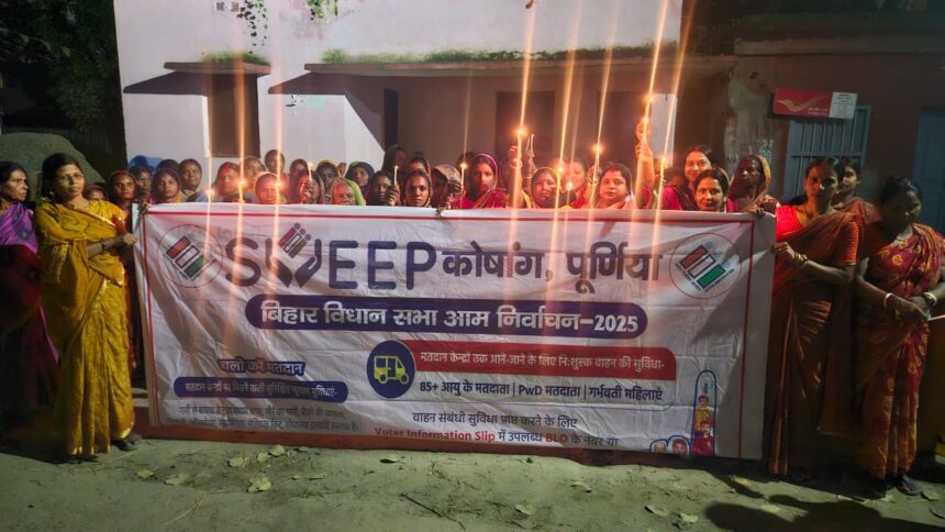 PURNIA NEWS : बनमनखी में जीविका दीदियों ने मतदाता जागरूकता के लिए निकाला कैंडल मार्च