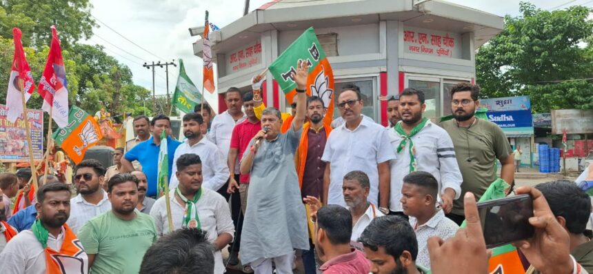उन्होंने आरोप लगाया कि कांग्रेस और राजद ने प्रधानमंत्री की दिवंगत माता को गाली देकर अपने “दोहरा चाल, चरित्र और चेहरा” को जनता के सामने उजागर कर दिया है। खेमका ने चेतावनी दी कि यदि दोनों नेता बिहार की माता-बहनों से अविलंब माफी नहीं माँगते, तो जनता आने वाले चुनाव में इन्हें राज्य से बाहर का रास्ता दिखा देगी। साथ ही विधायक ने शांतिपूर्ण ढंग से बंद को सफल बनाने में सहयोग देने वाले एनडीए कार्यकर्ताओं और पूर्णिया की जनता का धन्यवाद किया।
