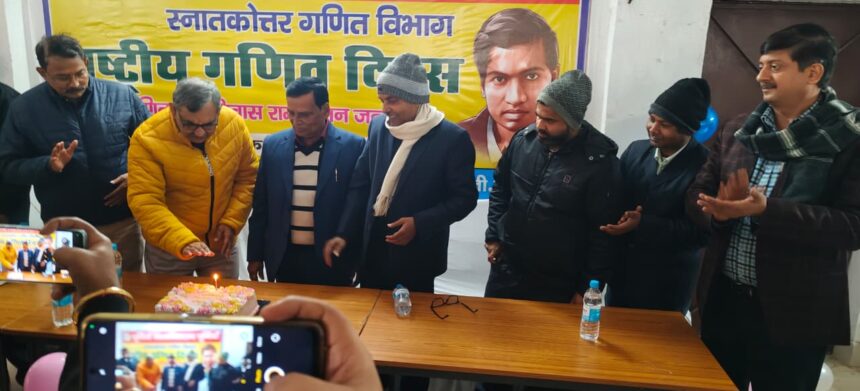 PURNIA NEWS : आज दिनांक 22 दिसंबर 2025 को पूर्णिया विश्वविद्यालय के स्नातकोत्तर गणित विभाग एवं पूर्णियां महाविद्यालय गणित विभाग के संयुक्त तत्वावधान में भारत के महान गणितज्ञ श्री एस. रामानुजन की जयंती धूमधाम से मनाई गई। कार्यक्रम की अध्यक्षता पी.जी. स्नातकोत्तर गणित विभागाध्यक्ष डॉ. गोपाल कुमार ने की। मुख्य अतिथि के रूप में कुलपति विश्वविद्यालय उपस्थित नहीं हो सके, लेकिन डी.एस.डब्ल्यू. प्रोफेसर अरविंद कुमार वर्मा ने विशिष्ट अतिथि के साथ मुख्य अतिथि का कर्तव्य निभाया। कार्यक्रम में विश्वविद्यालय के कुलानुशासक सह परीक्षा नियंत्रक डॉ. उदय नारायण सिंह, CCDC श्री संतोष कुमार सिंह, पूर्णियां महाविद्यालय के गणित विभागाध्यक्ष डॉ. सूर्य नारायण सुमन, उप कुलसचिव शैक्षणिक डॉ. नवनीत कुमार, उप कुलसचिव प्रशासन डॉ. सुमन सागर, सहायक कुलसचिव प्रशासन डॉ. पल्लव कुमार, सहायक परीक्षा नियंत्रक डॉ. देवाशीष डांगर सहित अन्य विभागाध्यक्ष, शिक्षक और रिसर्च स्कॉलर उपस्थित थे। सभी ने मिलकर केक काटकर रामानुजन जयंती की बधाई दी।