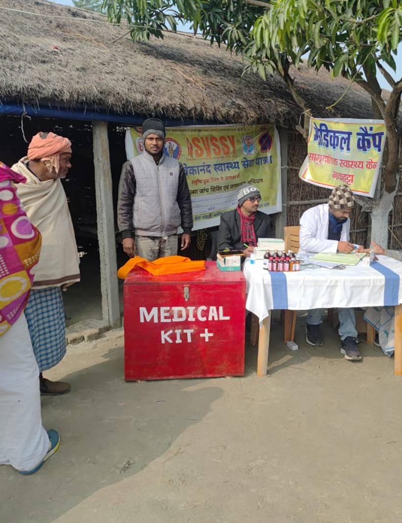 पूर्वी कोसी तटबंध के ग्रामीण इलाके में राष्ट्रीय स्वयंसेवक संघ ने लगाया चिकित्सा शिविर