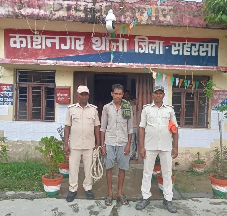 SAHARSA NEWS,अजय कुमार : जिले के सोनवर्षा राज प्रखंड क्षेत्र के काशनगर थाना पुलिस ने मंगलवार की संध्या गश्ती के दौरान गुप्त सूचना पर कार्रवाई करते हुए छापेमारी की। इस दौरान पुलिस ने भस्ती विंन्दटोली निवासी शादो महतो, पिता सियाचरण महतो को 14 लीटर देशी शराब के साथ गिरफ्तार कर लिया।