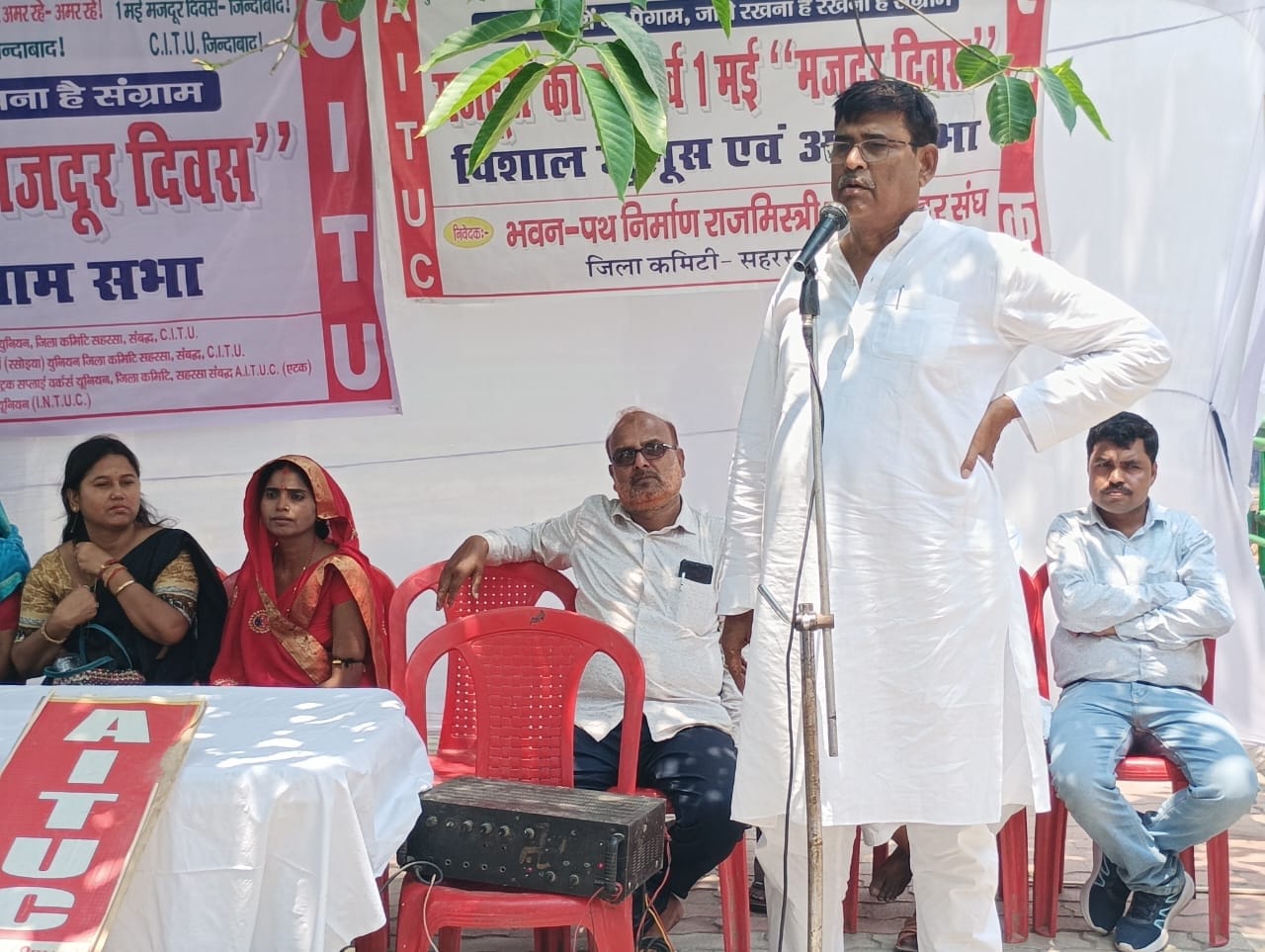 SAHARSA NEWS,अजय कुमार : मजदूर दिवस के अवसर पर सहरसा में एटक सीटू और इंटक के बैनर तले मजदूरों द्वारा मजदूर दिवस समारोह पूर्वक मनाया गया । सुपर बाजार कला भवन के पास से मजदूरों ने थाना चौक वीर कुंवर सिंह चौक अंबेडकर चौक होते हुए जयप्रकाश पार्क के बगल में आमसभा में तब्दील हो गया । जुलूस में शामिल मजदूर चार लेबर कोड रद्द करो, शिकागो के शहीद मजदूर अमर रहे, काम के घंटे को 8 घंटे लागू करो, मजदूरों के अधिकार पर हमला करना बंद करो, मजदूरों के हक और अधिकार और सुरक्षा गारंटी करनी होगी,इस रिक्शा चालकों का शोषण बंद करो, आदि नारे लगा रहे थे । रैली का नेतृत्व एटक नेता मोहम्मद नसिर, सीटू नेता मोहम्मद नसीम और इंटक नेता सत्यनारायण चौपाल ने किया । मजदूरों की सभा को संबोधित करते हुए भारतीय खेत मजदूर यूनियन के राष्ट्रीय नेता ओमप्रकाश नारायण ने कहा कि देश गंभीर आर्थिक राजनीतिक और सामाजिक संकटों के दौर से गुजर रहा है । मजदूर दिवस इस बात का परिचायक है पूरे दुनिया में मजदूरों के हक और अधिकार की रक्षा के लिए चलने वाले संघर्ष में मजदूर शहीद हुए और मजदूर के हक और अधिकार की रक्षा हो सकी उसी की याद में 1 मई मजदूर दिवस का आयोजन होता है आज के दौर में मजदूरों की हक अधिकार पर बड़े तेजी से पूंजीपति वर्ग और सरकार के द्वारा हमला हो रहा है। 44 कानून जो मजदूर हितैसी था 4 लेबर कोड बदल दिया गया जो मजदूर विरोधी कानून है । वर्तमान समय में अभिव्यक्ति के आजादी पर सरकार के द्वारा लगातार हमले जारी हैं सरकार से सही सवाल करने वाले सामाजिक कार्यकर्ताओं सांस्कृतिक कर्मी, प्रोफेसर के ऊपर देशद्रोह का मुकदमा दायर कर उनके आवाज को दबाने की कोशिश की जा रही है । वर्तमान समय में मजदूरों को संगठित होकर अपने हक अधिकार के लिए संघर्ष के लिए आगे आना होगा ।