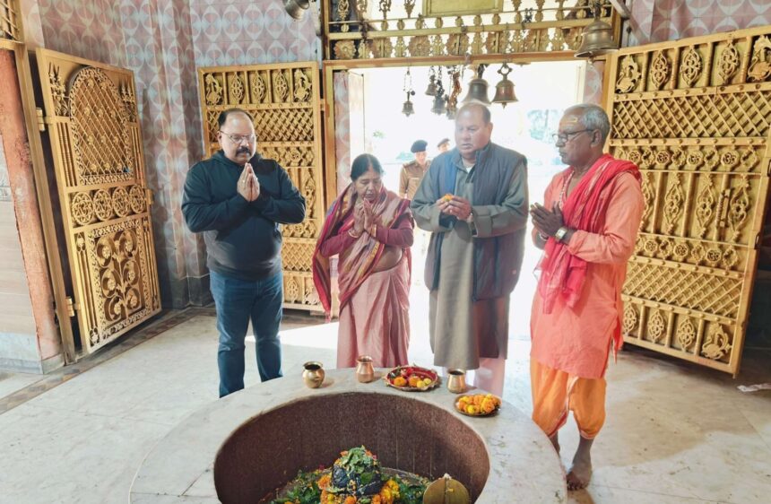 अररिया, प्रिंस कुमार : पुलिस अधीक्षक (एसपी) अंजनी कुमार सिंह आज अपने माता-पिता के साथ अररिया जिले के ऐतिहासिक शिव मंदिर सुंदरनाथ धाम पहुँचे। एसपी सिंह ने यहां सुंदरनाथ धाम स्थित शिवगंगा से जल लेकर गर्भगृह में महंत सिंहेश्वर गिरी के सान्निध्य में विधि-विधान पूर्वक पूजा-अर्चना की।