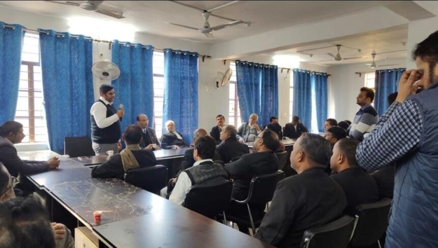 विधि संवाददाता पूर्णिया: गुरुवार को जिला अधिवक्ता संघ के प्रशाल में ई फीलिंग के मुद्दे पर अधिवक्ताओं से विचार विमर्श करने प्रधान जिला एवं सत्र न्यायाधीश कन्हैया जी चौधरी एवं नवम जिला एवं अपर सत्र न्यायाधीश गौरव सिंह पधारे। इस मौके पर अधिवक्ता संघ के अध्यक्ष अवधेश कुमार तिवारी एवं सचिव सुमन जी प्रकाश के अलावे बहुत सारे अधिवक्ता गण मौजूद रहे। प्रधान जिला एवं सत्र न्यायाधीश ने कहा की उच्च न्यायालय के आदेशानुसार पूर्णिया सिविल कोर्ट में भी ई फीलिंग लागू करना है। ताकि धीरे-धीरे न्यायालय का कामकाज पेपरलेस हो सके। उन्होंने आगे कहा की कोशिश हो कि अब कोई भी फीलिंग, ई फाइलिंग के जरिए हो, ताकि भविष्य में न्यायालय के सारे काम डिजिटल और पेपर लेश की ओर अग्रसर हो सके।