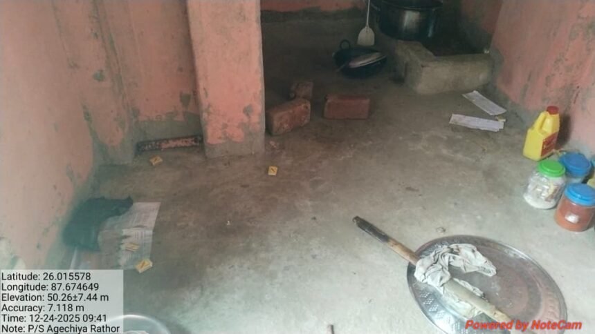 विति रात्रि स्कूल में किचन शेड का ताला तोड़कर दो गैस सिलेंडर एक गैस चूल्हा एक बाल्टी एवं एक भगोंना का चोरी कर लिया गया है। जब बुधवार दिनांक 24दिसम्बर.2025 को 9:30 बजे सुबह में विद्यालय पहुंचे तो किचन शेड का ताला टूटा देख अंदर गया तो देखा सारा सामान उल्टा पुल्टा था और दूसरे गैस सिलेंडर एक गैस चूल्हा आदि गायब था। प्रभारी प्रधानाध्यापक ने थाना प्रभारी से आवश्यक कानूनी कार्रवाई करने की मांग। थानाध्यक्ष अवधेश के बारे में बताया कि प्रधानाध्यापक द्वारा लिखित शिकायत की गई है ।छानबीन की जा रही है।