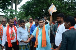 उन्होंने बताया कि केंद्र की मोदी सरकार और राज्य की नीतीश सरकार ने मिलकर किसान, महिला और युवाओं के हित में कई योजनाएं शुरू की हैं—किसानों को सालाना 6 हजार की सम्मान निधि और जीविका समूह की दीदियों को स्वरोजगार के लिए वित्तीय सहयोग दिया जा रहा है। खेमका ने कहा कि भयमुक्त और समृद्ध पूर्णिया उनका संकल्प है और जनता से अपील की कि एक बार फिर कमल खिलाकर विकास की इस यात्रा को आगे बढ़ाएं। इस दौरान मनोज गोस्वामी, मंगल पोद्दार, धनंजय भगत, बिनोद सिंह समेत बड़ी संख्या में एनडीए कार्यकर्ता और स्थानीय नागरिक मौजूद रहे।