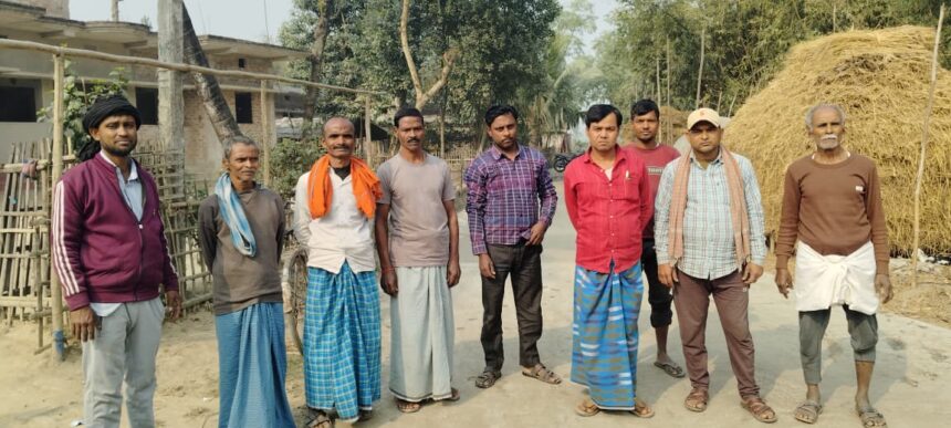 और सड़क ढप्लाई के दौरान कहीं तीन इंच कही 4 इंच ढलाई कर सड़क का निर्माण किया जा रहा है। जिसमें संवेदक द्वारा घटीया निर्माण कार्य हो रहा है। ग्रामीण ने डीएम से सड़क की गुपवत्ता की जाँच की मांग। मांग करने वालों में चन्द्रानन्द विश्वास,भुवनेश्वर विश्वास, शंकर कुमार विश्वास ,श्यामलाल वि,लखन लालविश्वास ,मिथलेश कुमार, सुशील कुमार विश्वास, विनोद कुमार विश्वास एवं विकेश कुमार विश्वास आदि सहित अन्य ग्रामीण शामिल है।
